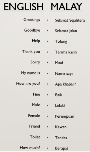 In Malaysia, the majority speaks English too, however a little effort to learn Malay will earn you a smile, willing assistance from the locals and even earn you big brownie points with the locals!